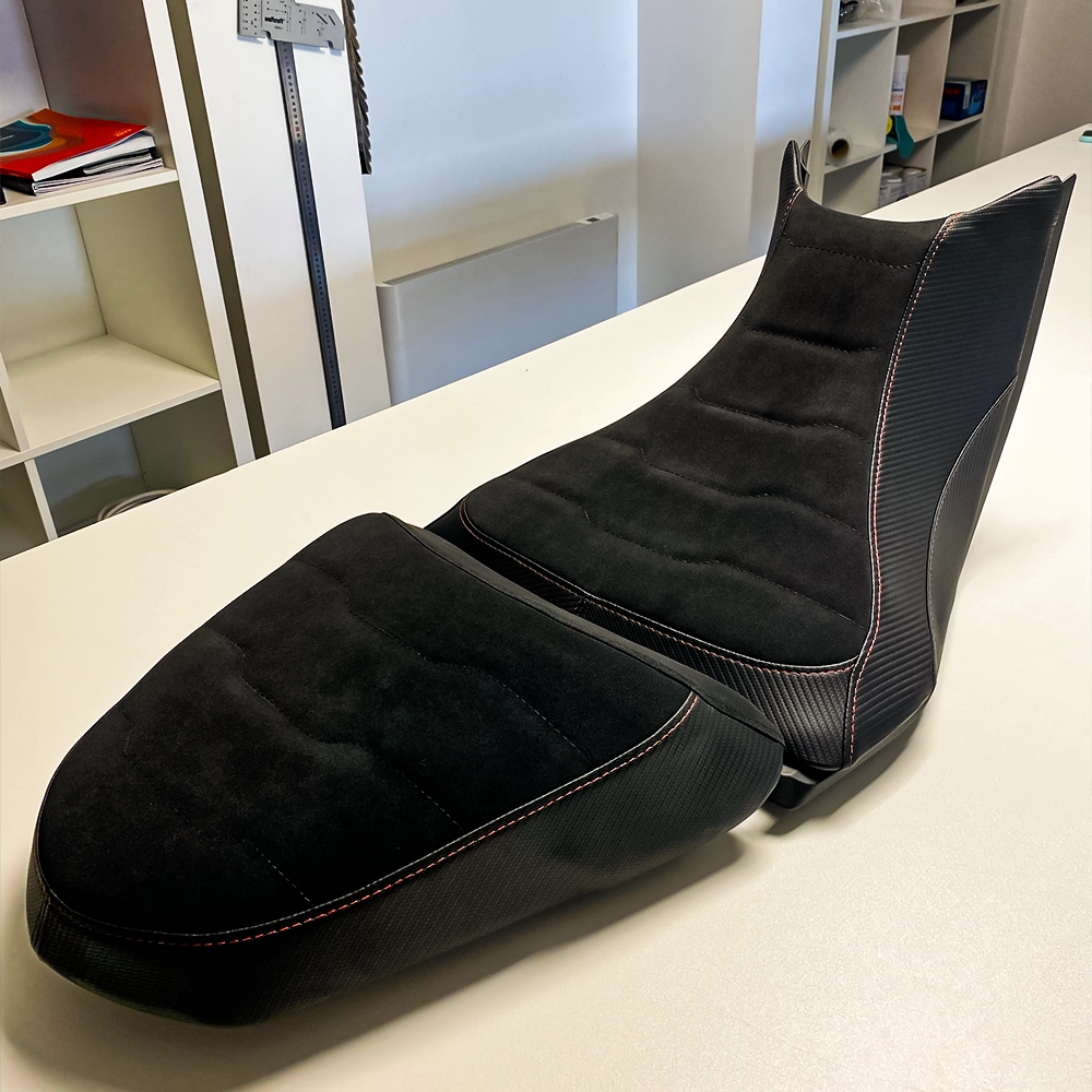 Marion, ma compagne, a un titre professionnel de sellière-garnisseuse. Elle participe à l’aménagement intérieur de votre véhicule. Coussins, sièges voiture ou moto en sellerie, permettent de parfaire votre confort de route, en vous offrant la possibilité de personnaliser votre véhicule à votre image à l’intérieur.