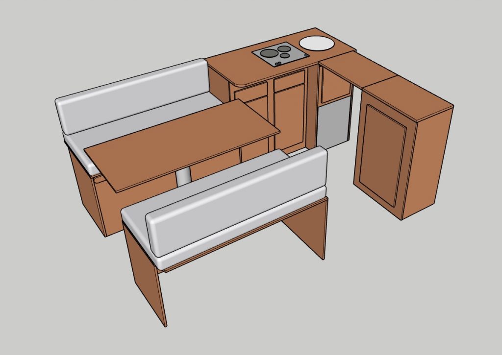Livré sans les coussins assises/lit ni équipement de cuisine